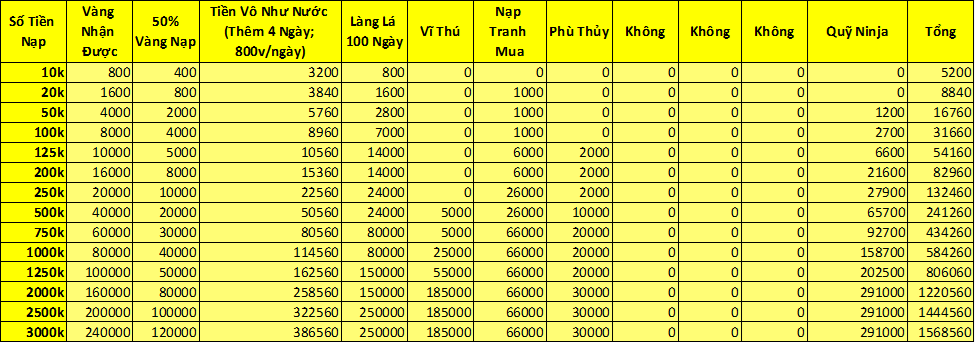 3. Ninja cuôi cấp càng cao , vàng trả lễ càng nhiều