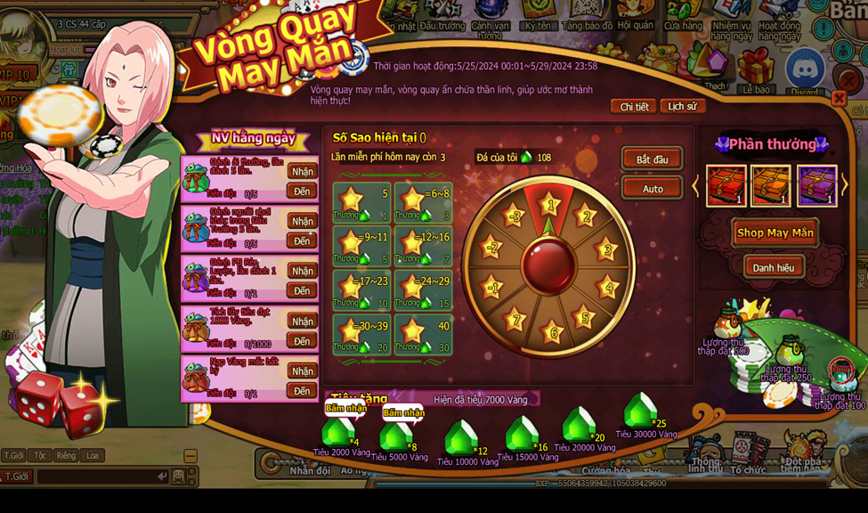 1.Trong thời gian hoạt động hoan thành nv hằng ngày nhận sao may mắn