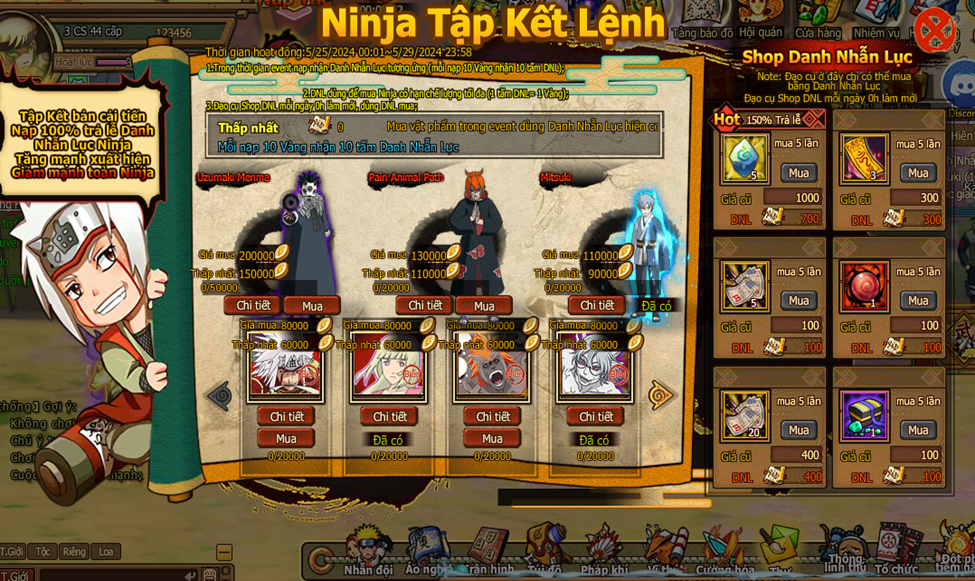 2.DNL dùng để mua ninja có hạn chế lượng tối đa ( 1 tấm DNL bằng 1 vàng )
