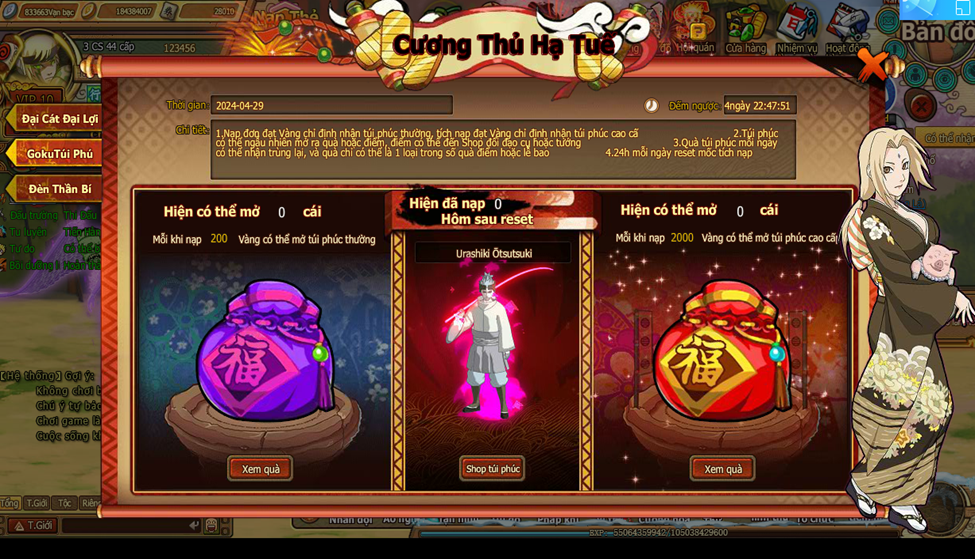 3. Quà túi phúc mỗi ngày có thể nhận trùng lại, và quà chỉ có thể là 1 loại trong số quà điểm hoặc lễ bao.