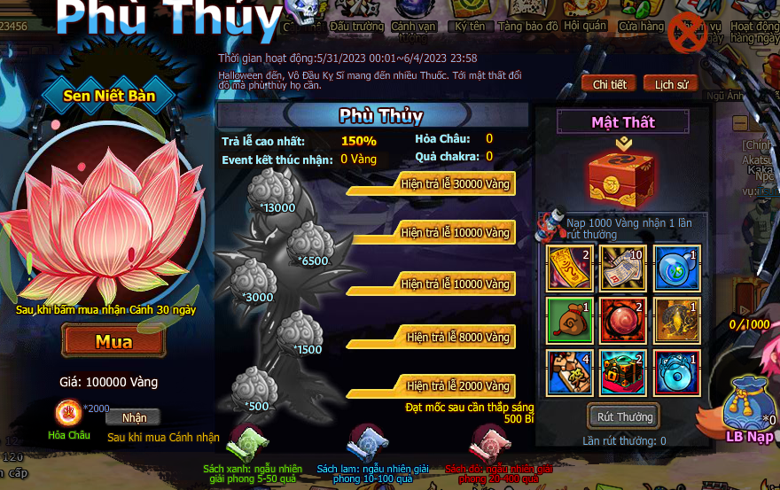 1. Trong thời gian event nạp Vàng đạt mốc chỉ định kích hoạt quyền mua đạo cụ giới hạn giảm giá: một số đạo cụ còn miễn phí nhận.
