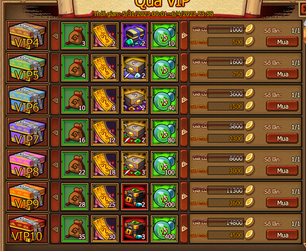 Cấp vip tương ứng sẽ được mua , mua bằng vàng hoặc lễ kim