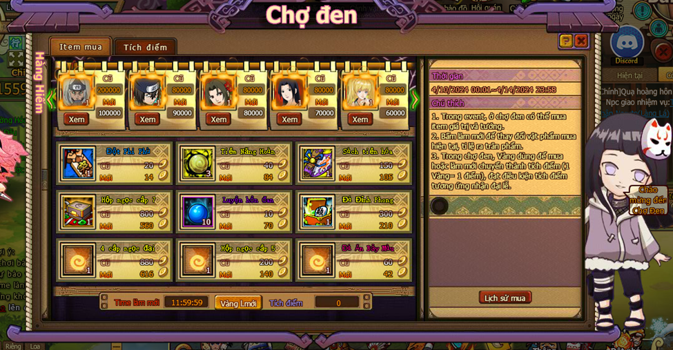 1. Trong event , ở chợ đen có thể mua item giá trị và tướng