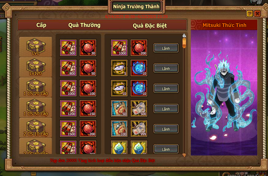 1. Tăng cấp ninja chỉ định để nhận thưởng