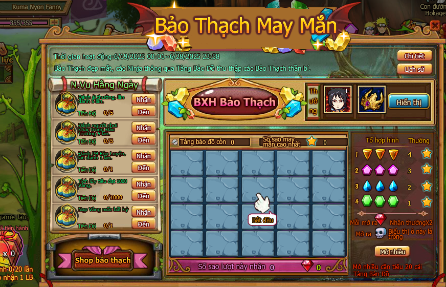 1.Trong thời gian hoạt động hoan thành nv hằng ngày nhận sao may mắn