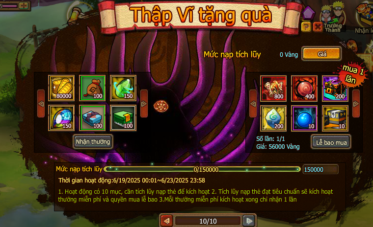 2. Tích lũy nạp thẻ đạt tiêu chuẩn sẽ kích hoạt thưởng miễn phí và quyền mua lễ bao