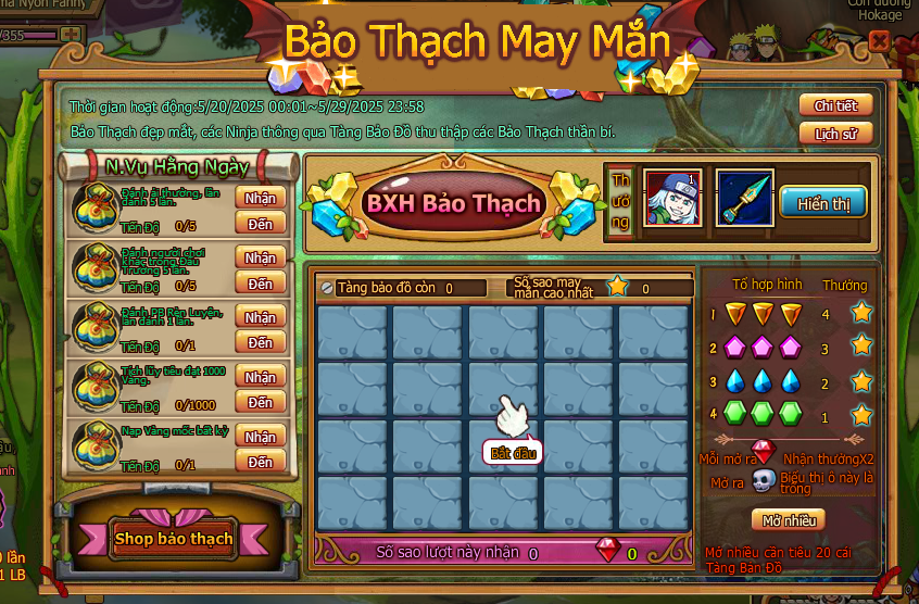 1.Trong thời gian hoạt động hoan thành nv hằng ngày nhận sao may mắn