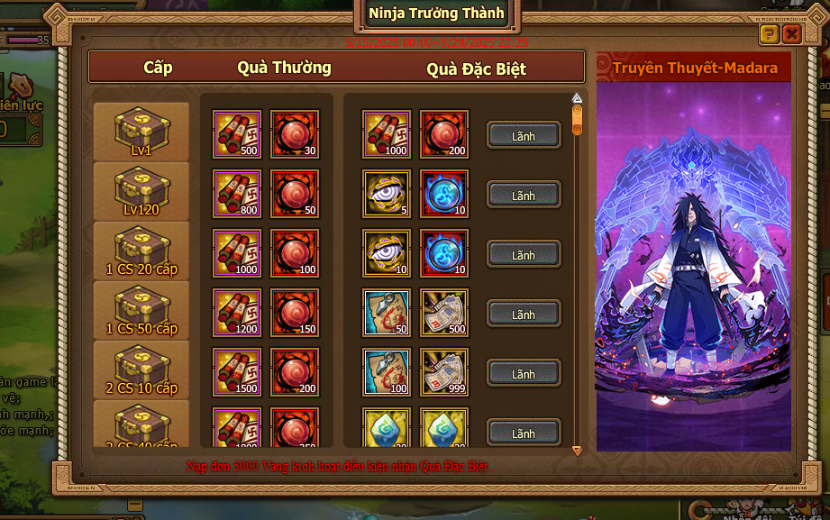 2. Nạp đơn 5000 Vàng kích hoạt điều kiện nhận Quà Đặc Biệt
