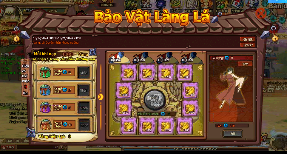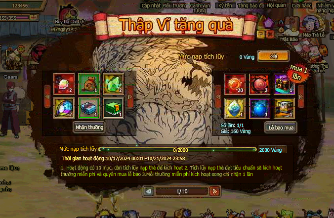 3. Tích lũy nạp đạt 50000 vàng , nhận đại lễ tích lũy nạp